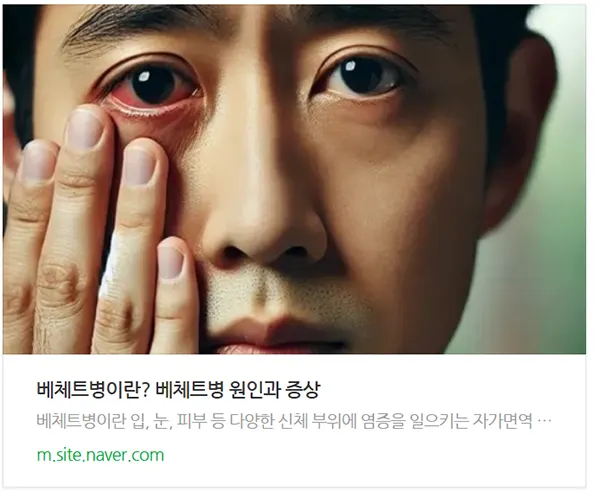 | 베체트병이란? 베체트병 원인과 증상 (0) | 2024.11.04 |
